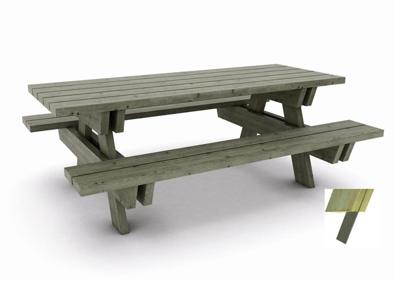 Table d'extérieur à sceller avec pieds livrés 4 plaques anti tronçonnage en acier galvanisé. Possibilité version à poser sans utilisation des plaques.