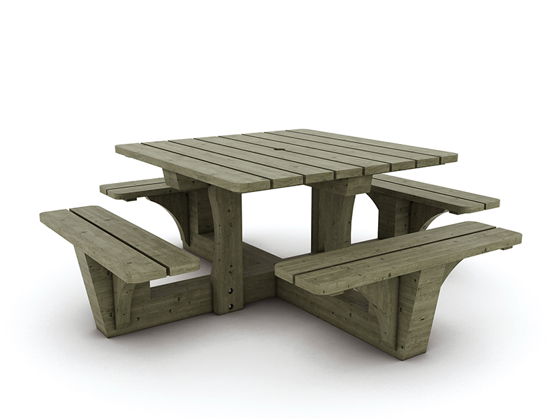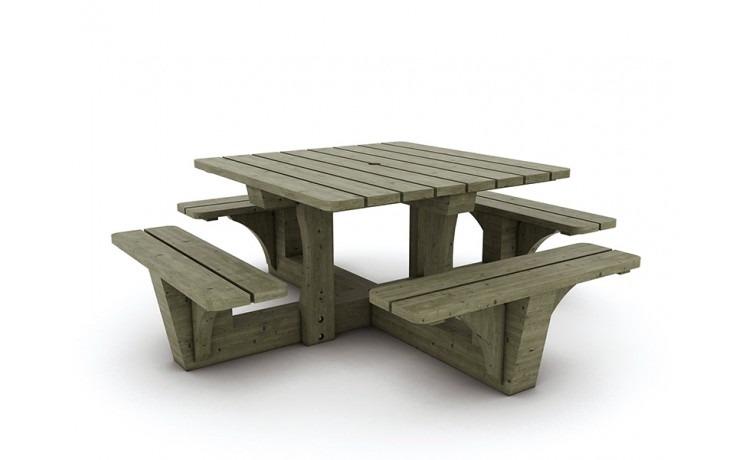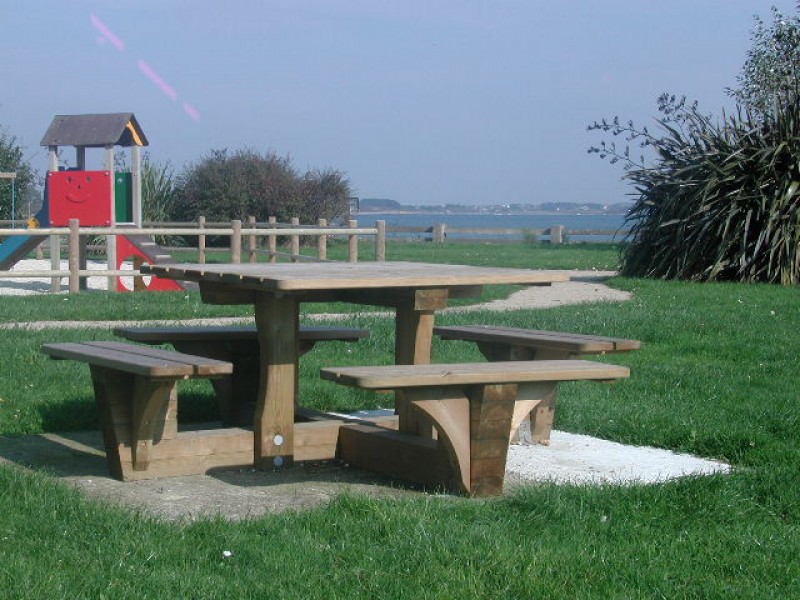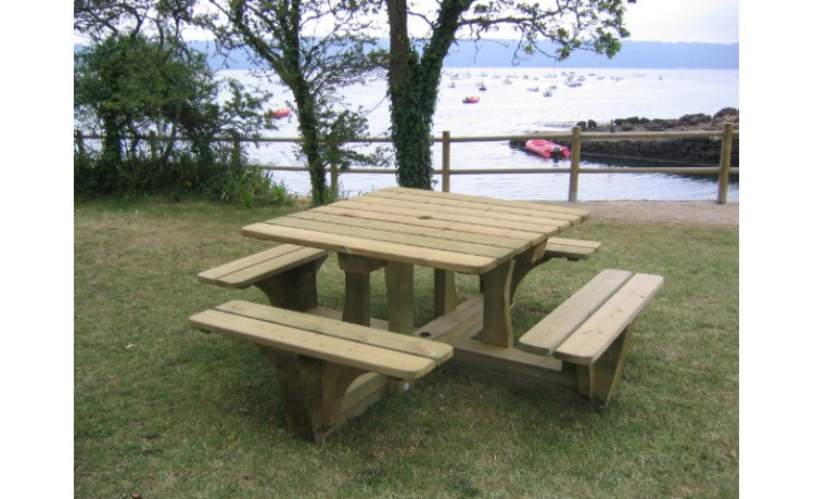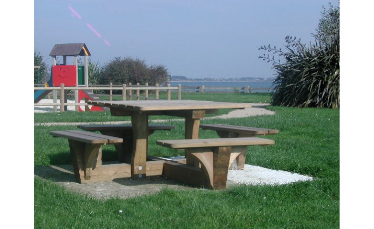Table d'extérieur en bois à poser Possibilité de scellement avec le kit de scellement Livrée en kit, prêt à monter Visserie inox Pin traité classe IV ou Robinier