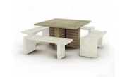 Plateau et piètement composés de lames 70 x 45 mm, finition arrondie.