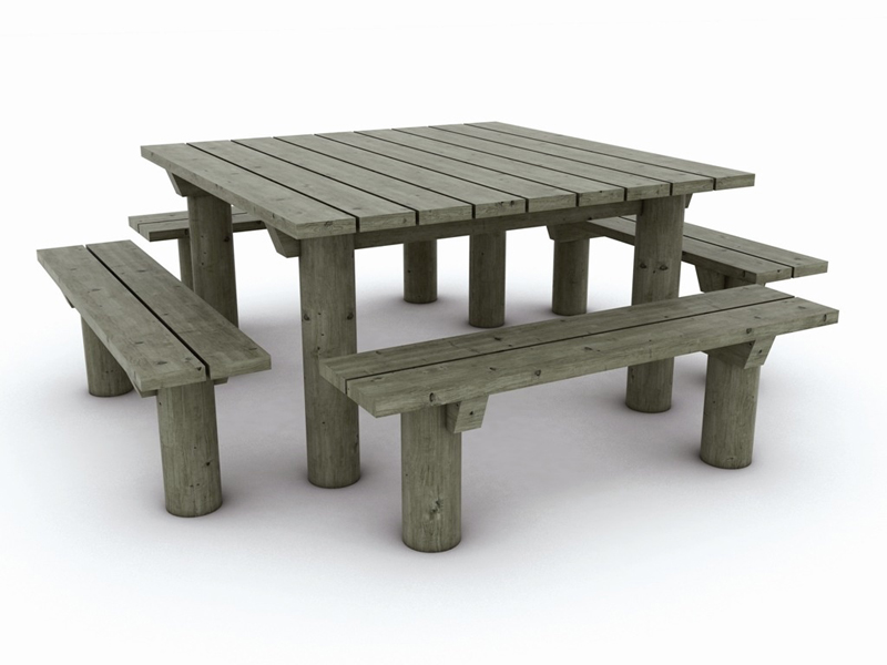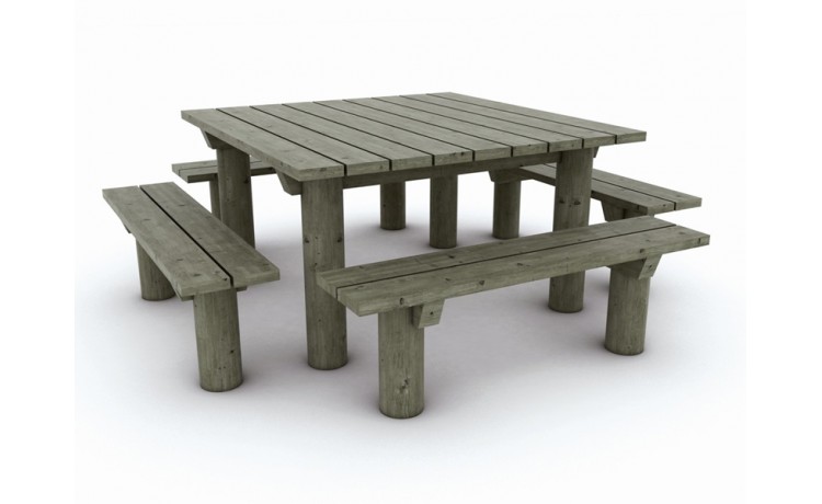 Table d'extérieur en pin traité de CL4, à sceller, prévue avec sur-longueur de bois