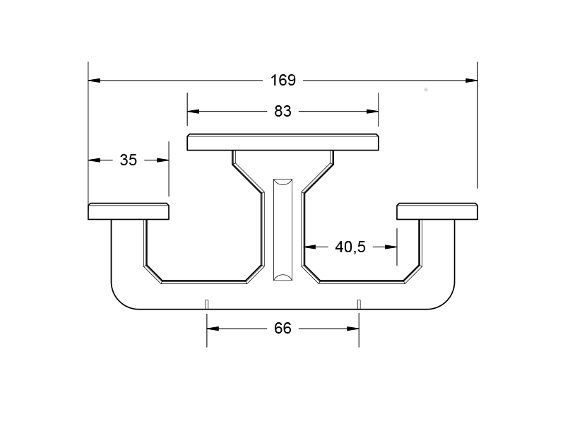 Entraxe des tiges : 66 cm - Manutention par sangles (non fournies)