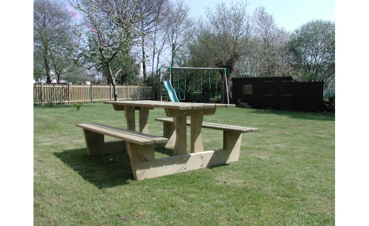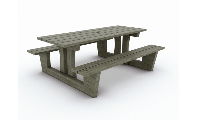 Table d'extérieur avec trou pour parasol (Ø 60 mm), à poser- Pin sylvestre CL4 - CTB B+ /TANALITH E/NF EN 5990. Garantie 10 ans contre le pourissement dû aux insectes et champignonsPossibilité de scellement avec le kit de scellementLivrée en kit, prêt à monterVisserie inoxDimensions 200 X 150 H 75 cmPoids : 124 Kg