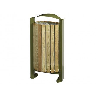 Corbeille sur pied - Façade bois - 60 L - Vert mousse/bois Prix sur devis